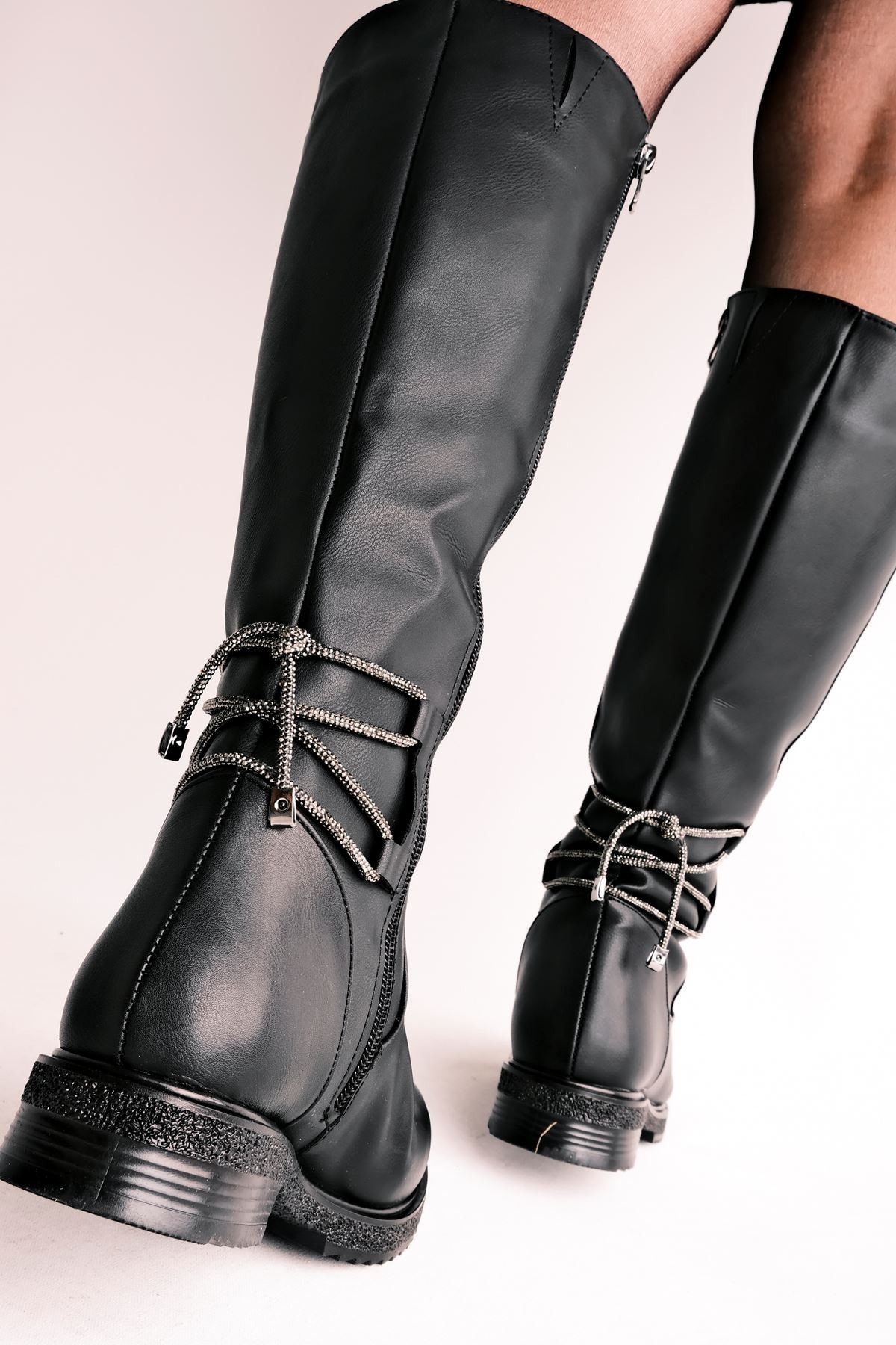 Davin Kadın Arkası Taşlı Bağcık Detaylı Çizme
