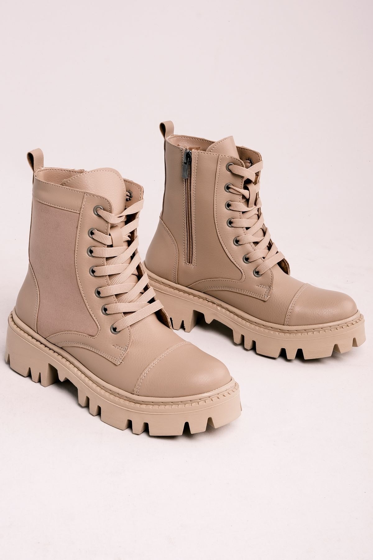 Dora Kadın Dikiş Detaylı Bilek Boy Yüksek Taban Postal