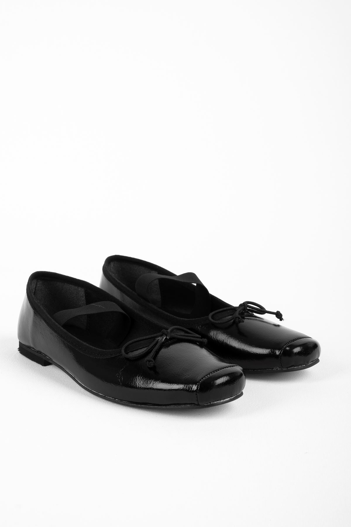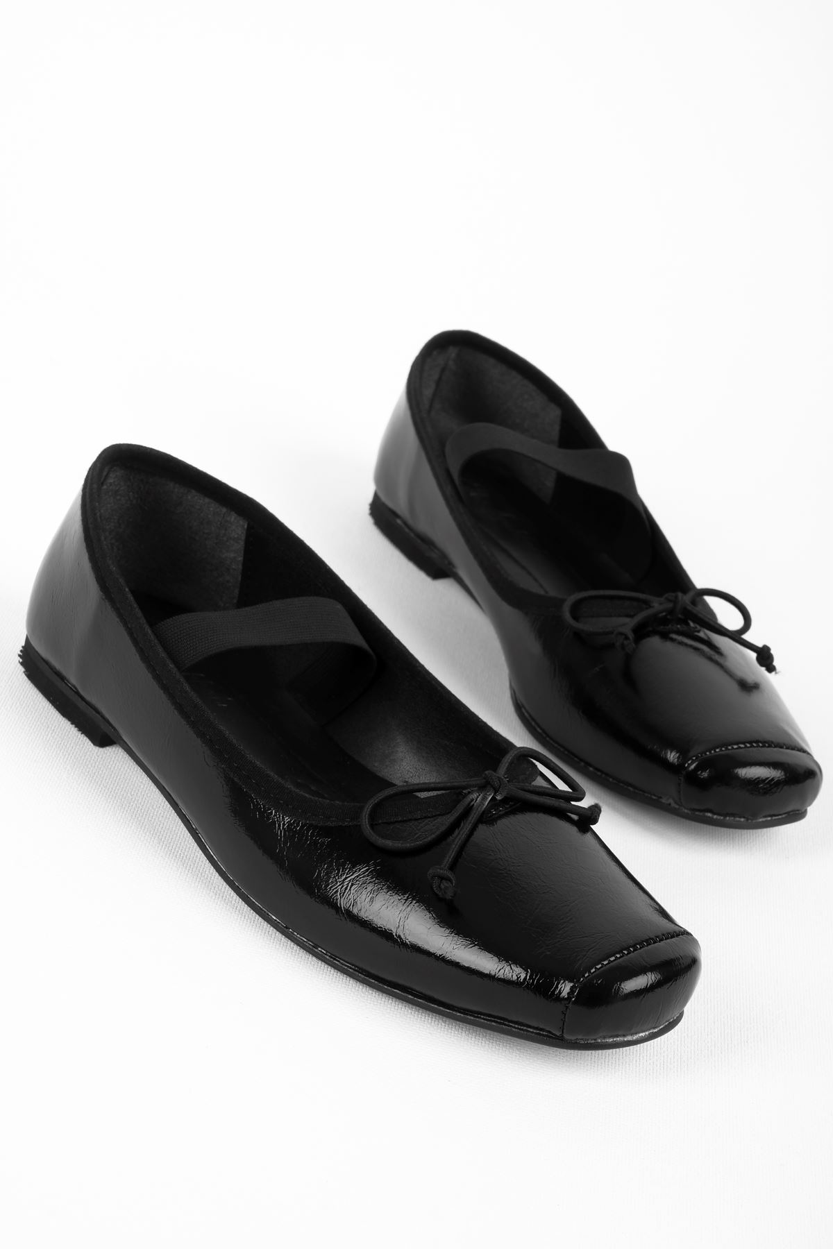 Eray Kadın Dikiş Detaylı Kurdeleli Ortadan Lastik Detaylı Babet Ayakkabı-siyah