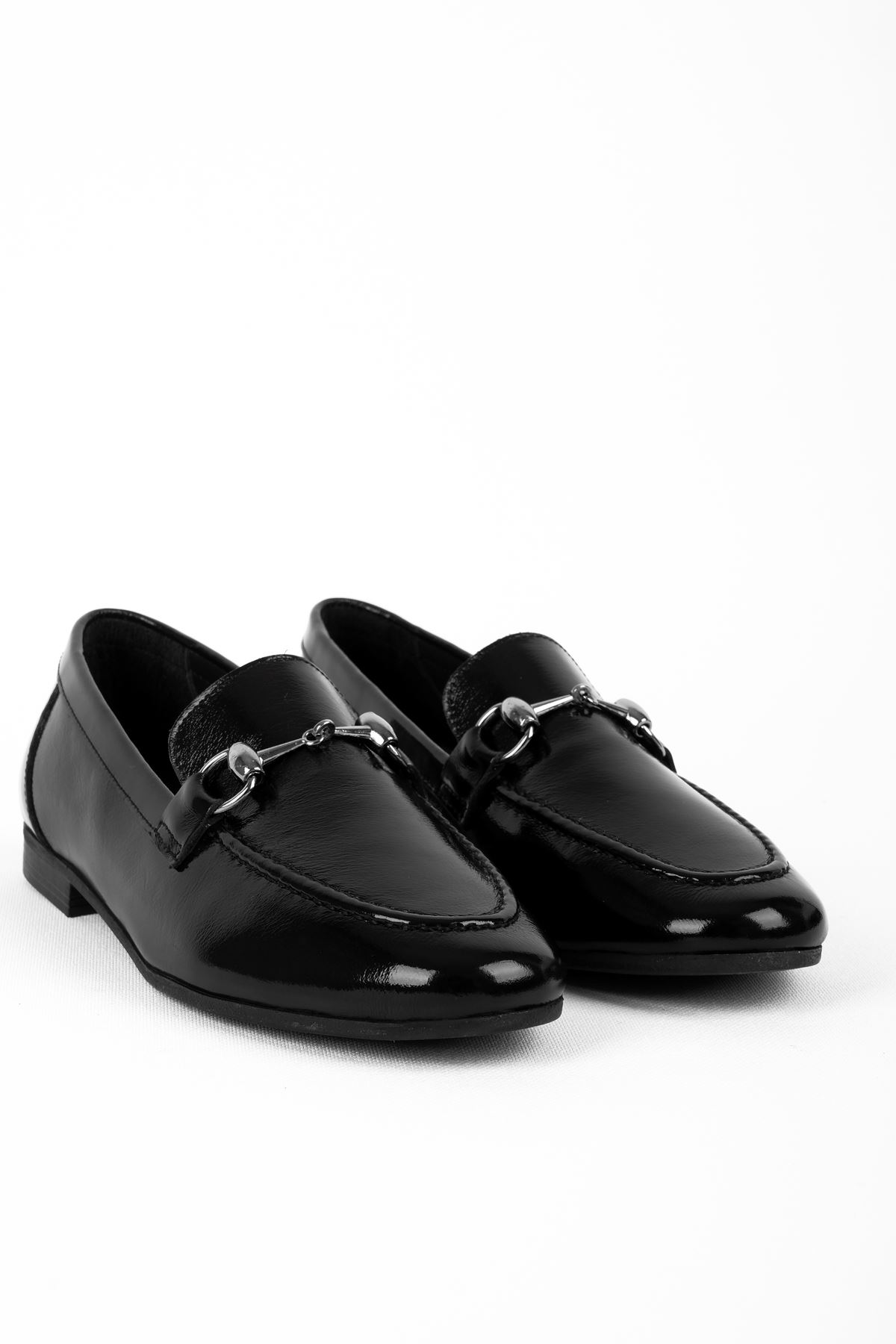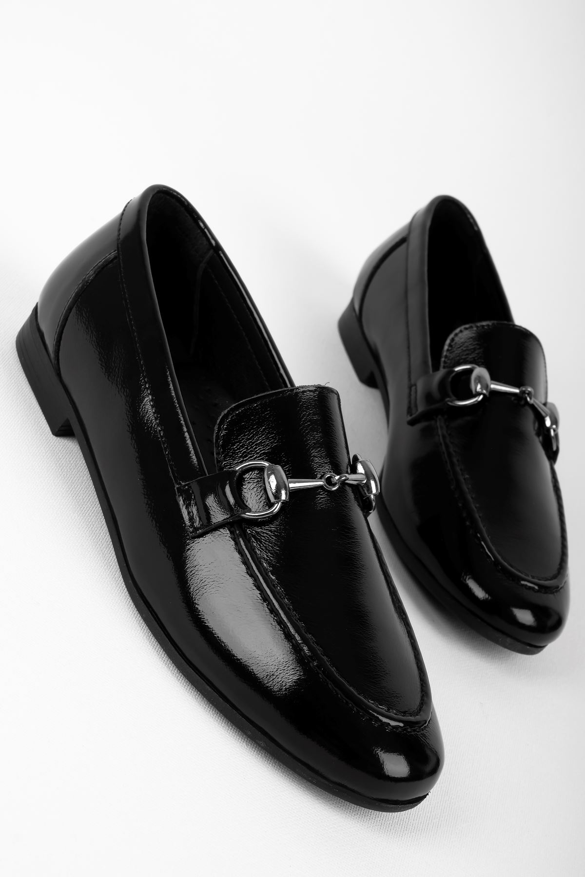 Persu Kadın Gümüş Parlak Toka Detaylı Babet Ayakkabı-R.SİYAH