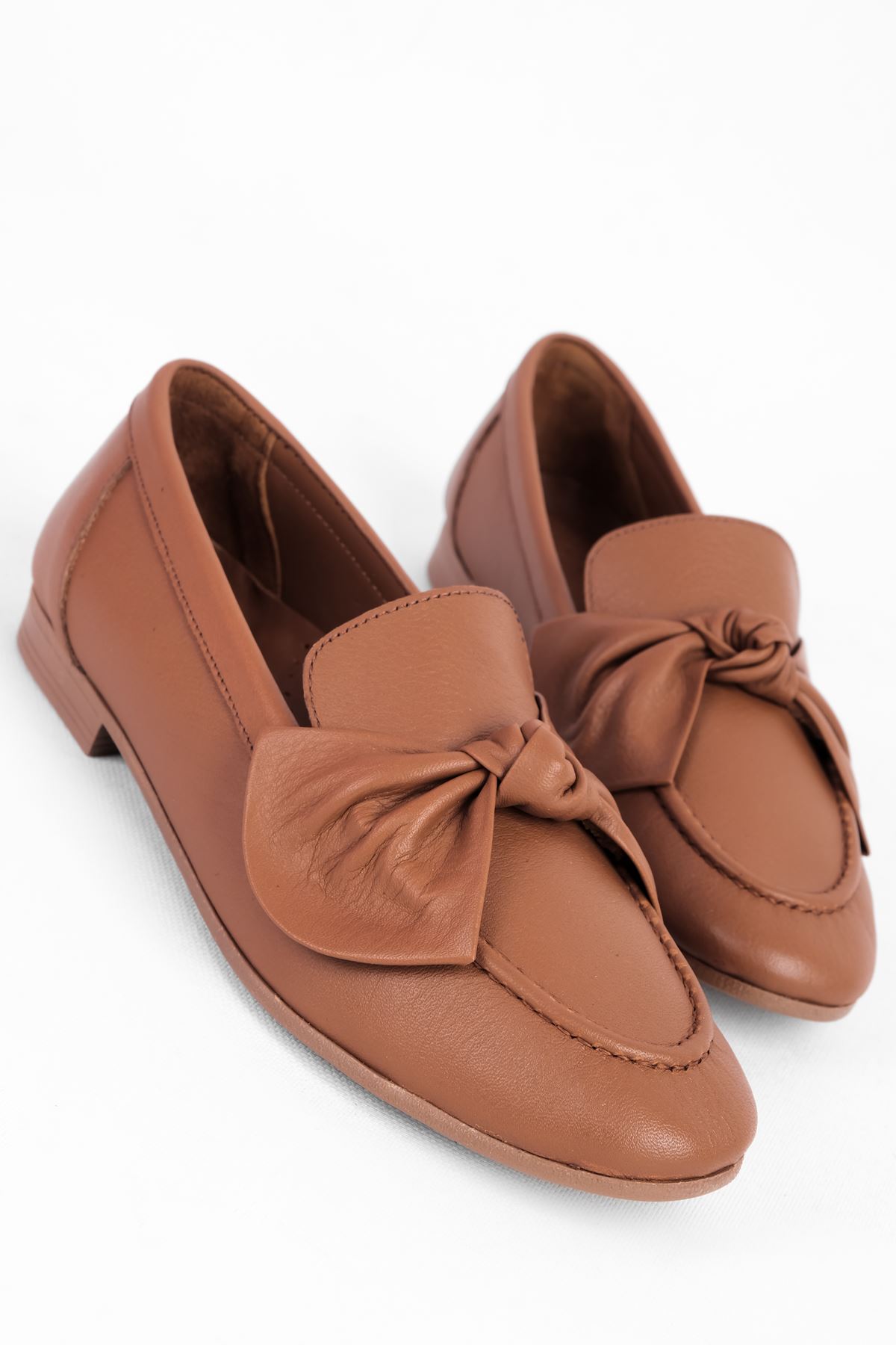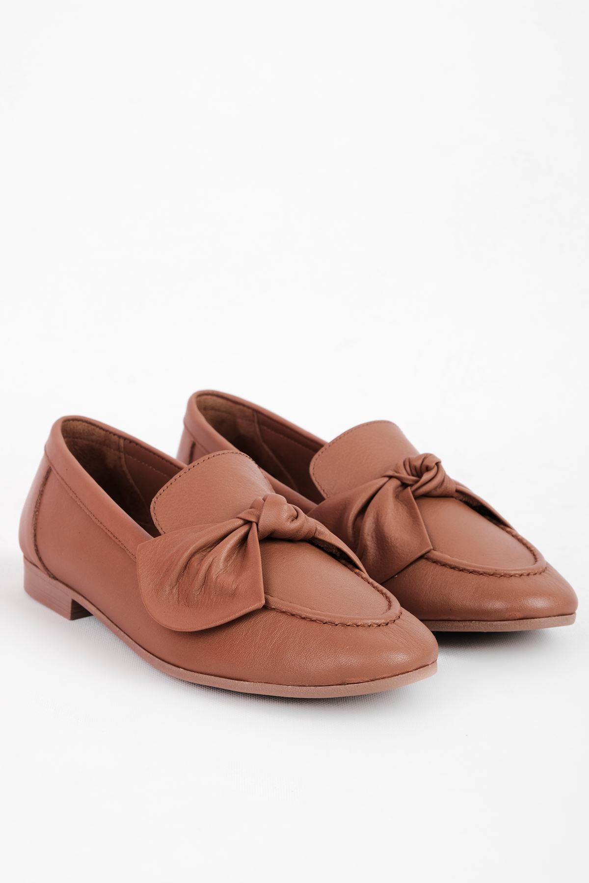 Taso Kadın Hakiki Deri Düğümlü Kurdela Detaylı Babet-Taba